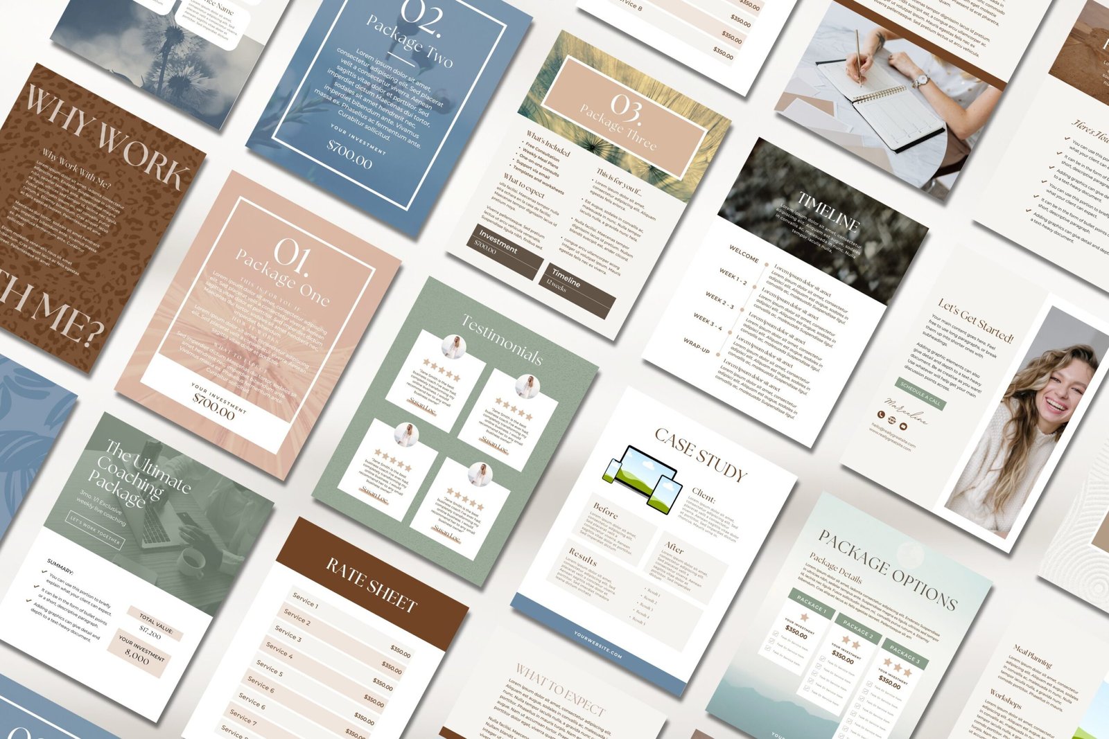 I have been there with nothing to send to potential clients. It’s so frustrating! You are missing out on a real opportunity to make a first wow impression. Designing a stunning layout in Canva that looks professional and onbrand with your business takes time, and that’s where this template comes to the rescue!