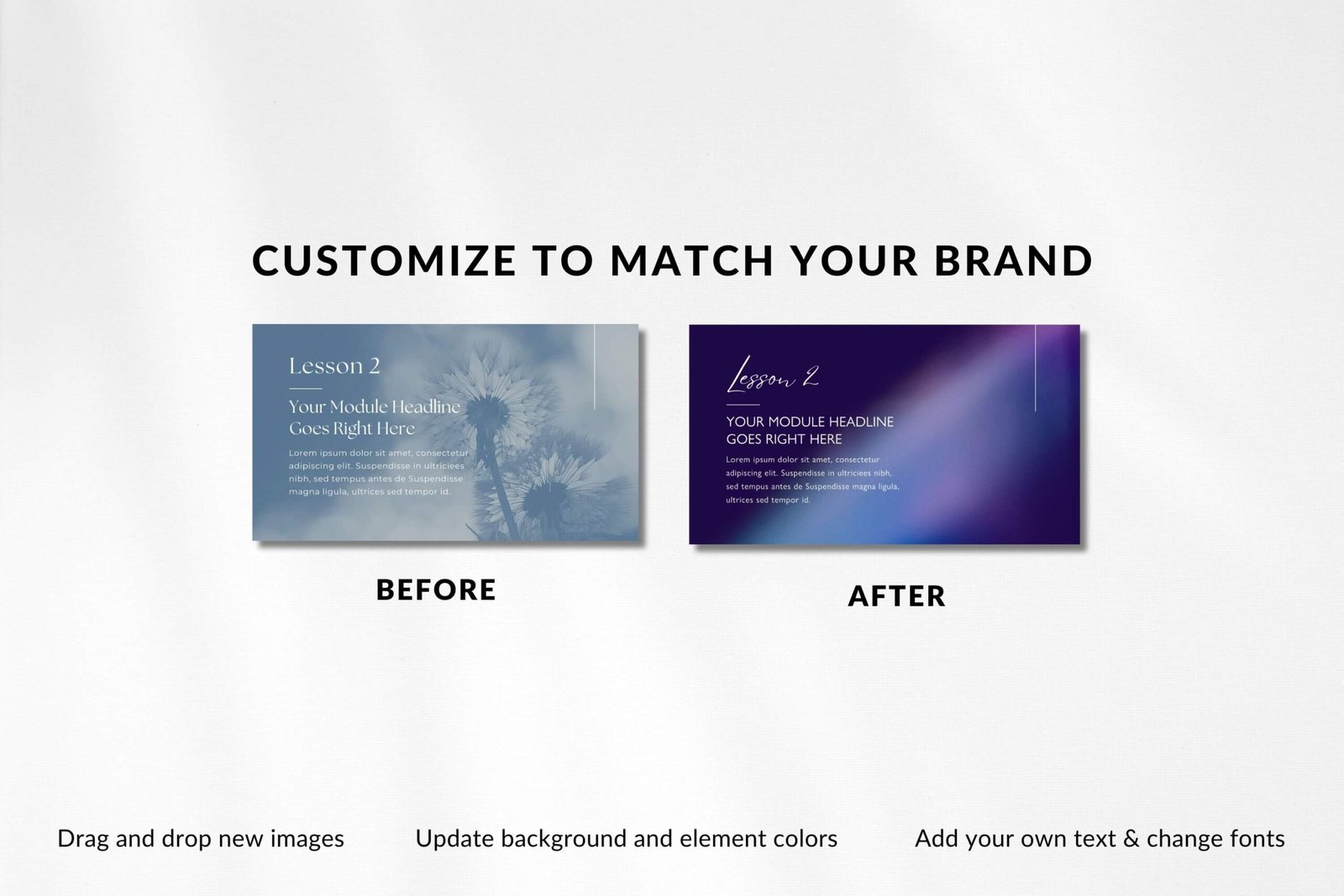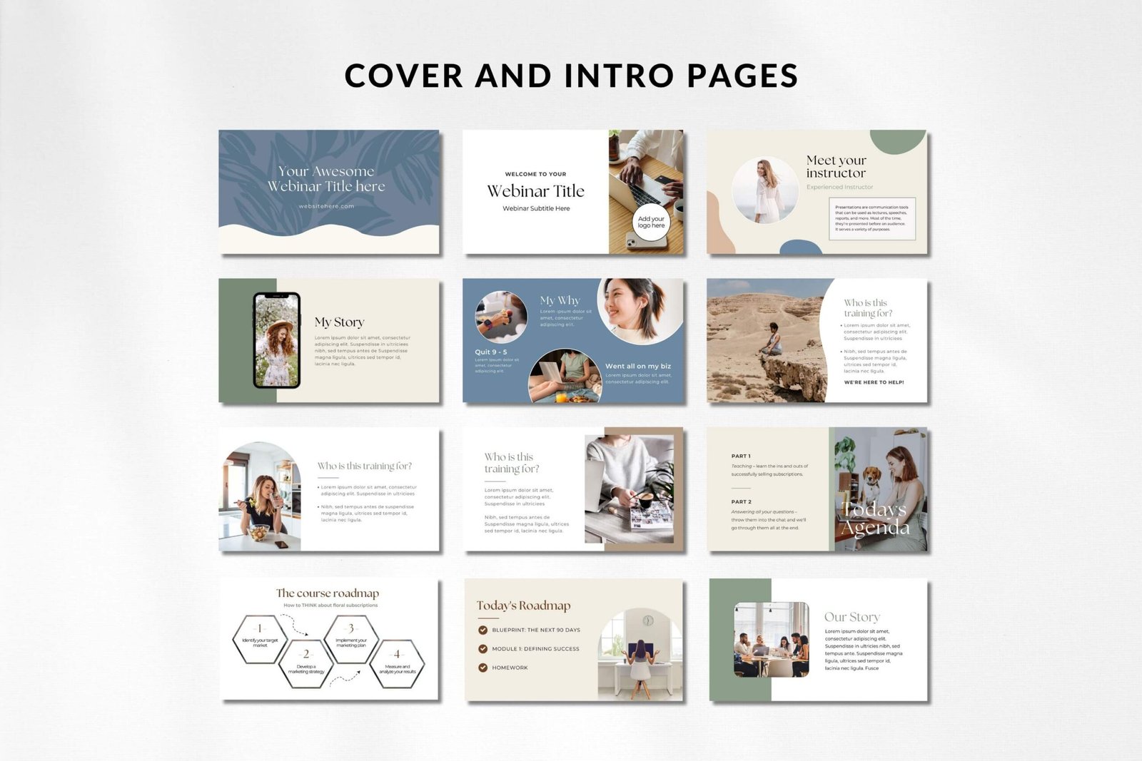 Our new Skye webinar and presentation templates will help you create a beautiful pitchdeck, webinar and/or course presentation for your students and potential clients. Canva will save you so much time with these predesigned templates!