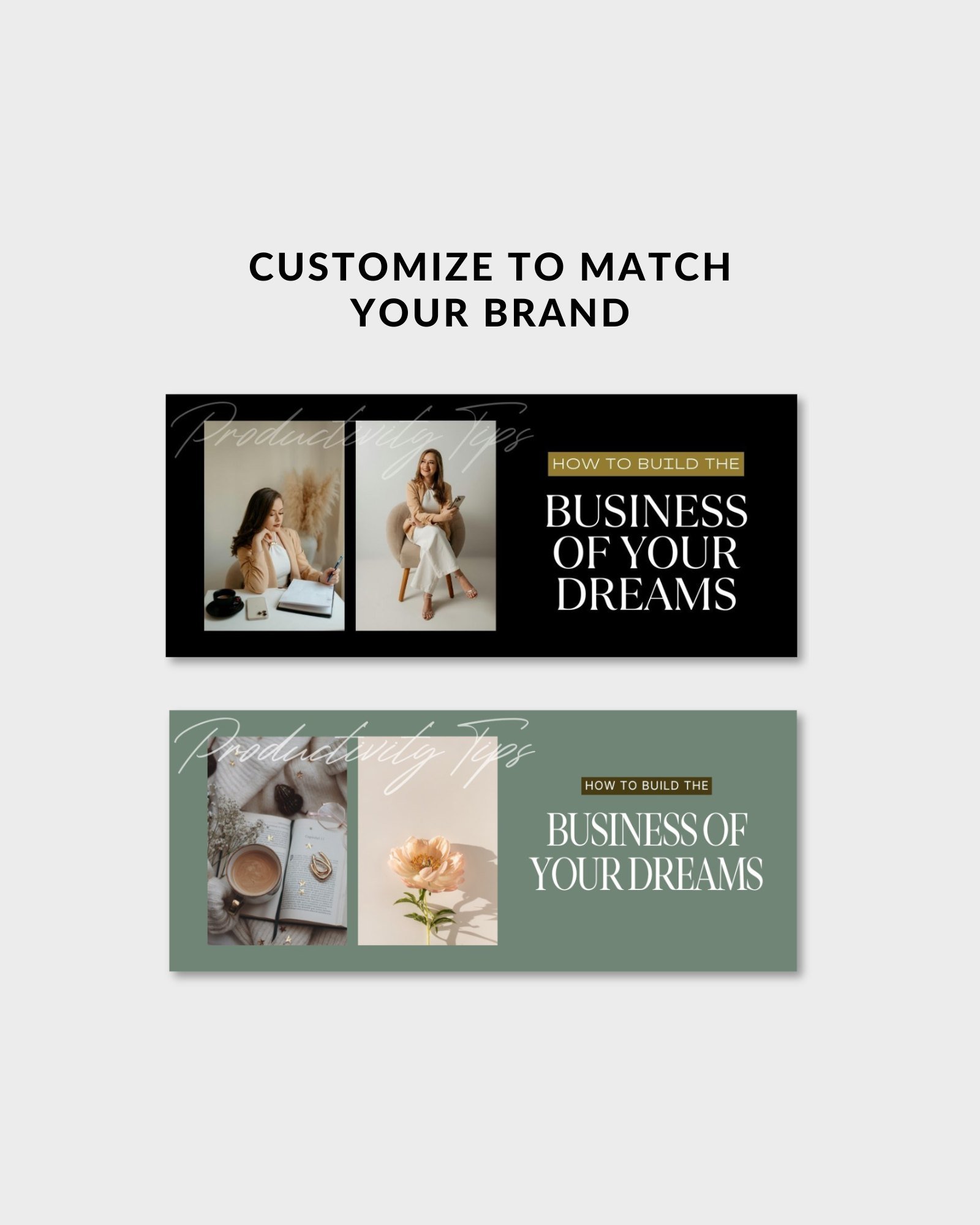 The Vienna Luxe Email Header Collection includes 30 fully customizable Canva templates (1200px x 500px) designed to elevate your email newsletters in seconds.