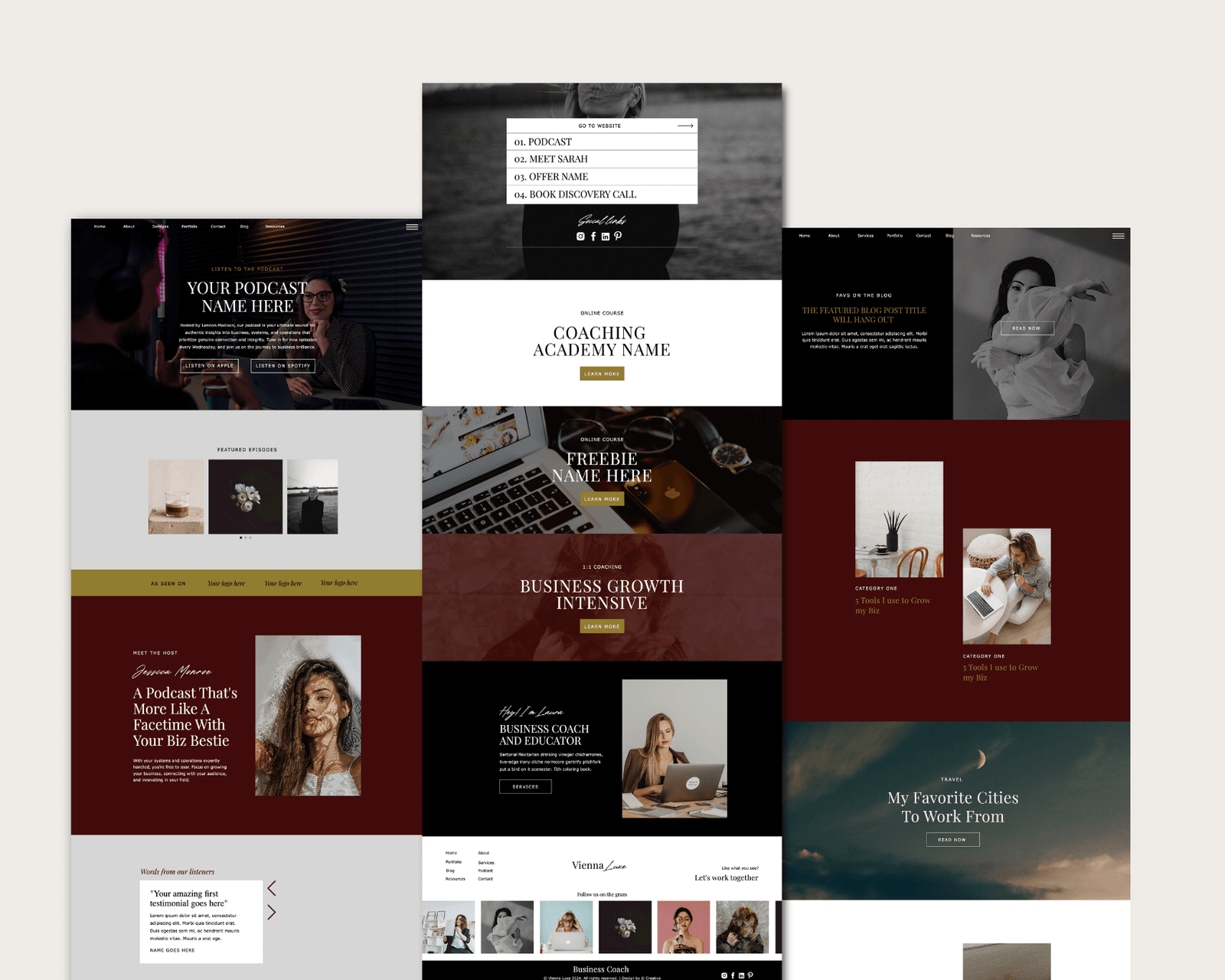 Welcome to Vienna Luxe, a stunning Showit website template designed especially for coaches, course creators, photographers, marketers, and influencers seeking a high-end web solution and experience. Experience a premium and luxurious design at an affordable price, all while enjoying full customization to match your unique brand.