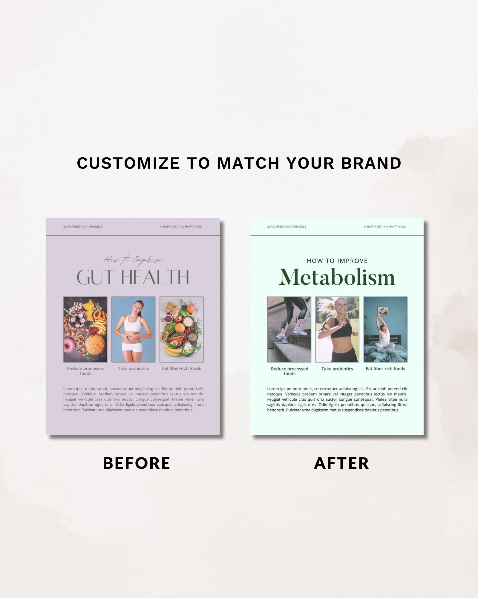 Simply replace placeholder content with your own text, change colors and photos to fit your brand, and you are ready to post!