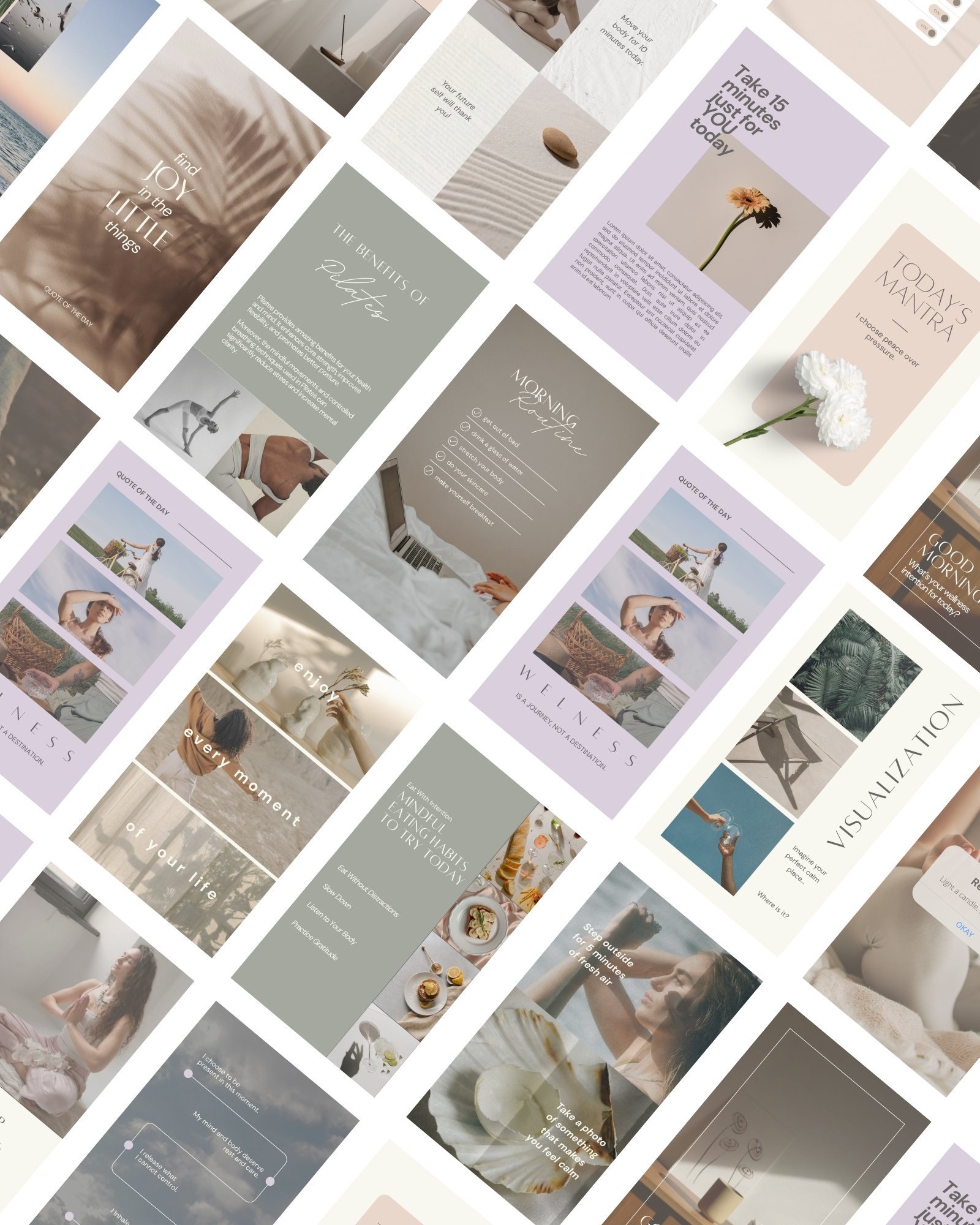 This soft violet inspired color palette is the perfect blend of serene natural earthy tones to give your instagram branding a captivating and calm vibe to your presence and brand. These templates will help you increase engagement, promote your offers, educate your audience, and grow your business on Instagram!